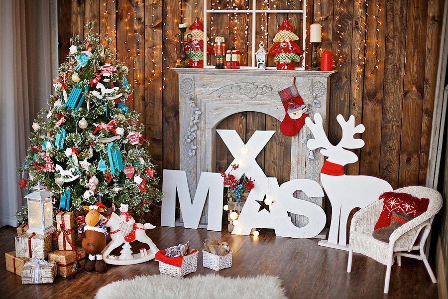 Тёплый домашний уголок, детские игрушки, яркая ёлка, камин, олень….Вообщем полный комплект для душевной фото зоны 🙂
